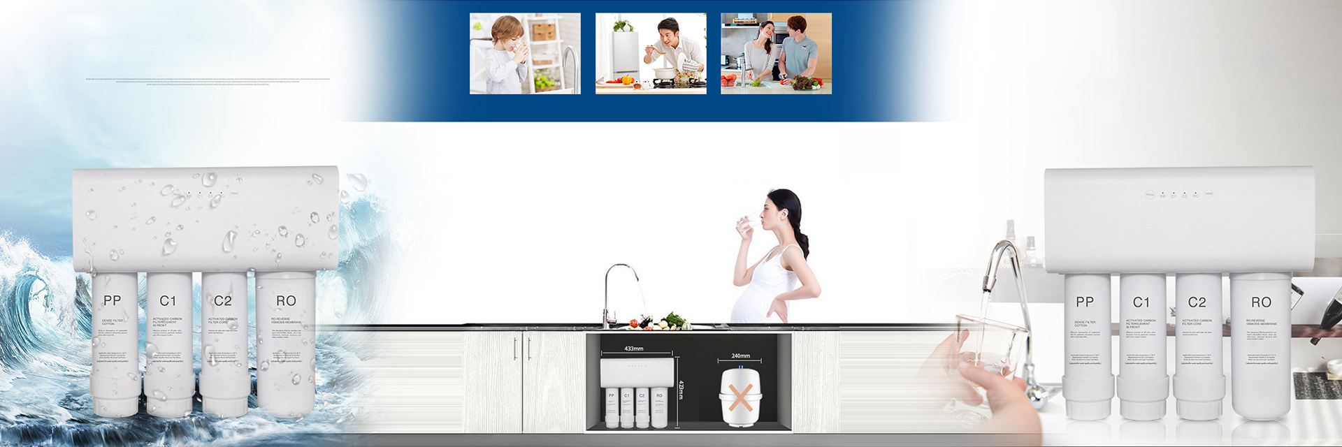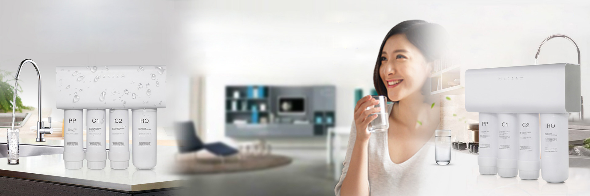 RO浄水器はアメリカで開発された最先端の浄水方式を採用した、逆浸透膜浄水器です。本浄水器のメインフィルター・逆浸透膜(メンブレン)が水道水中の不純物をほぼ完璧に除去し、危険因子のない安全な水を製造します